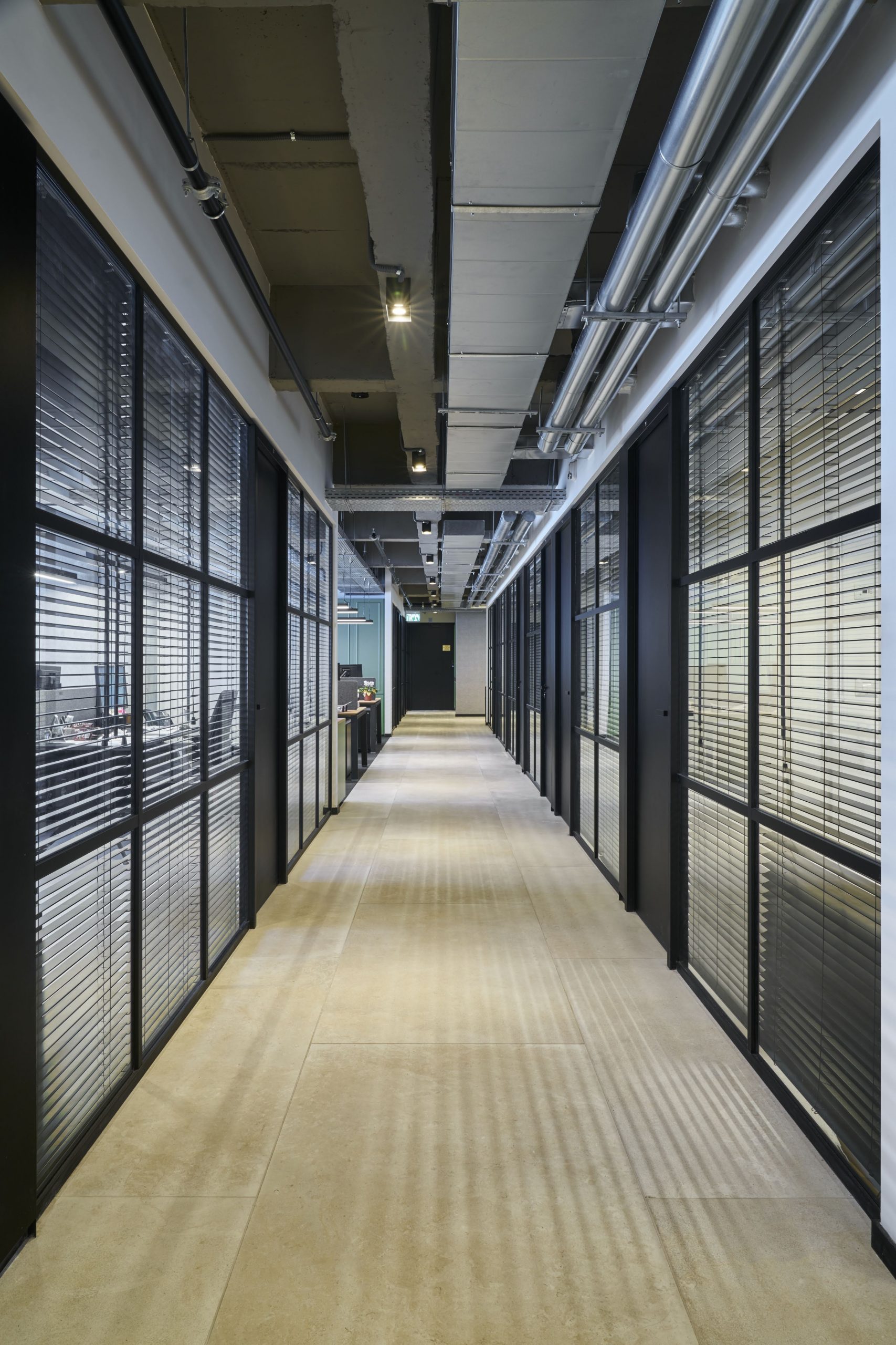 במשרדים אלו נעשה שימוש במגוון חומרים, החל מאריחי צמר זכוכית אקוסטיים לחיפוי תקרות הבטון, דרך ריצוף גרניט פורצלן במידות גדולות וכלה במחיצות זכוכית רצפה תקרה (FTC) מעוצבות.